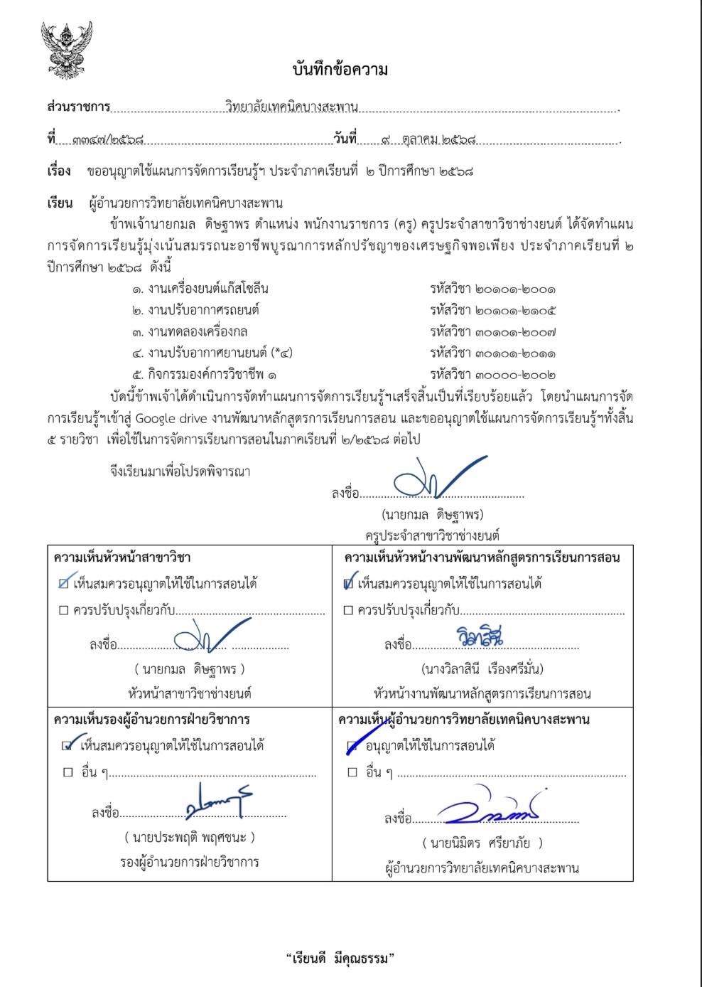 ใบอนุญาตใช้แผนการเรียนการสอน 1/2568