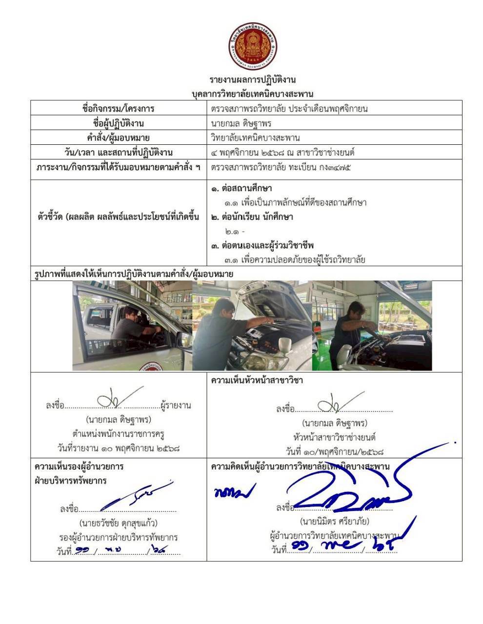 รายงานการตรวจสภาพรถยนต์ ซ่อมบำรุงรถยนต์ส่วนราชการ ประจำเดือนพฤศจิกายน