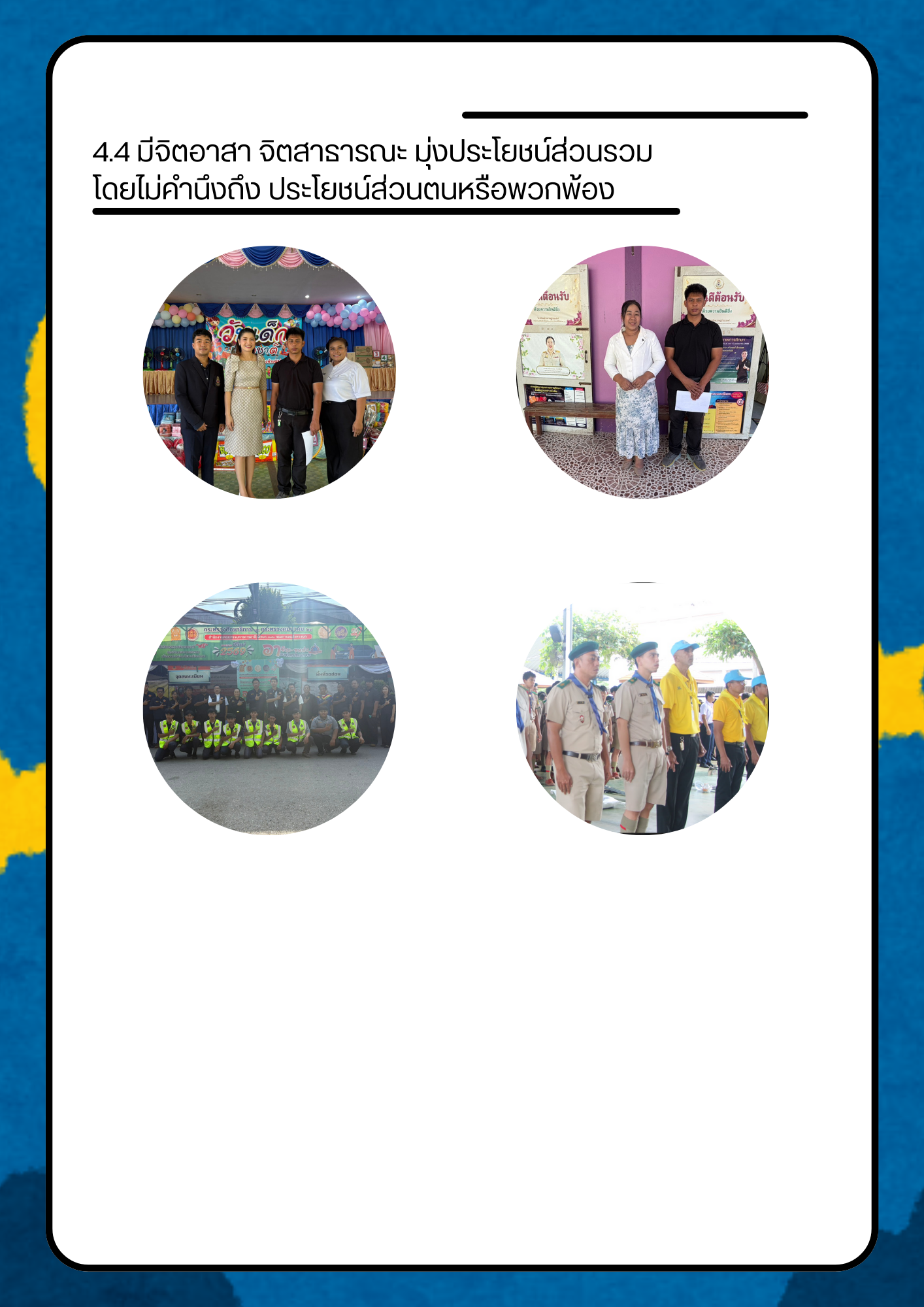 4.4 มีจิตอาสา จิตสาธารณะ มุ่งประโยชน์ส่วนรวม โดยไม่คำนึงถึงประโยชน์ส่วนตนหรือพวกพ้อง